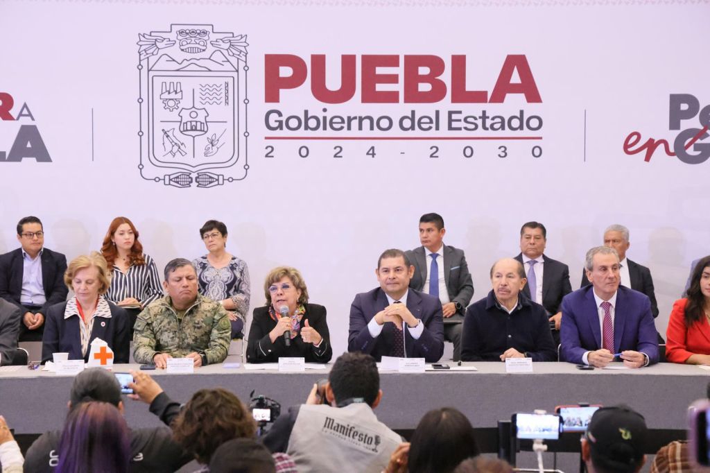 En la mañanera realizada en instalaciones de Centro Expositor, estuvieron presentes: Clara Luz Flores, titular de la Unidad de Asuntos Religiosos, Prevención y Reconstrucción del Tejido Social de la Secretaría de Gobernación Federal; el coordinador del Instituto Nacional para el Federalismo y Desarrollo Municipal, Raúl Armando Quintero Martínez; el secretario de Gobernación, Samuel Aguilar Pala; el coordinador de Gabinete; José Luis García Parra; el titular de Seguridad Pública, vicealmirante Francisco Sánchez González; la Fiscal del Estado, Idamis Pastor Betancourt y el presidente municipal de Puebla, José Chedraui Budib.